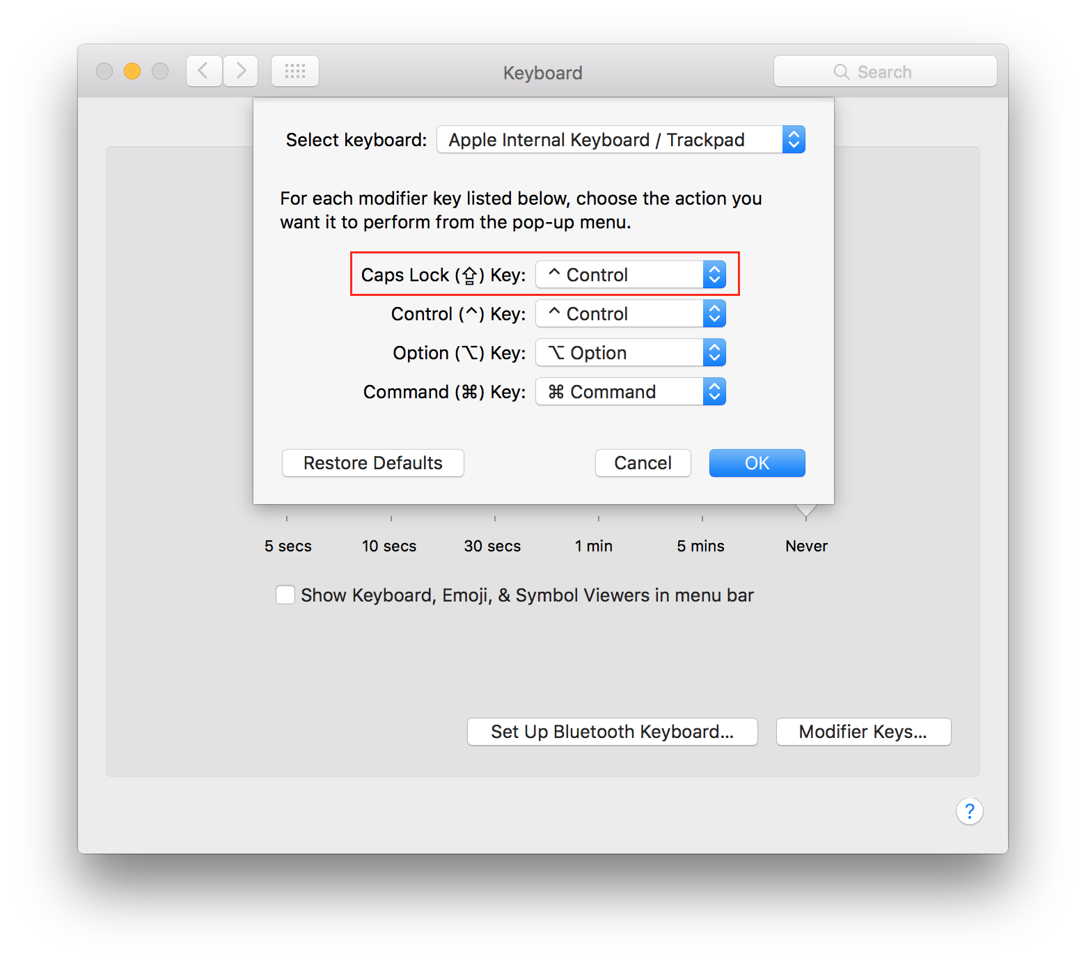To remap Caps Lock to ctrl on OS X go to System Preferences -> Keyboard -> Modifier Keys and set Caps Lock key to ”^ Control”.
