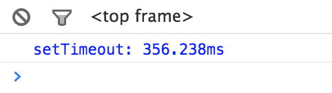 setTimeout(() => { console.timeEnd('setTimeout');}, 350);Will output something like: