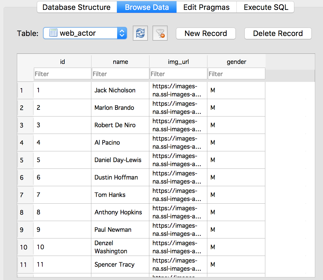 python manage.py runscript populate_dbIt takes a few seconds and voila, the actors!