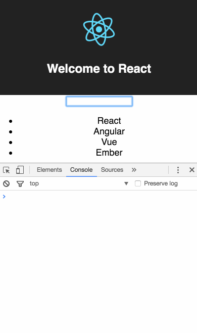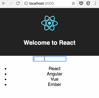 const List = ({ items, filterBy }) => { return ( <ul> { items .filter(item => item.indexOf(filterBy) > -1) .map((item, i) => <li key={i}>{item}</li>) } </ul> )}This List component renders our list. If you have no clue what filter and map do, I suggest you check out my post about awesome JavaScript array methods.