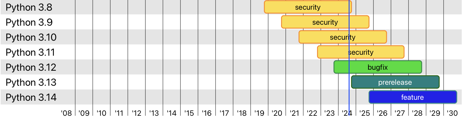 $ pyenv --versionpyenv 2.4.10Sweet. Time to install a Python version of our choosing. We’ll go with 3.12 because that’s the current stable release.